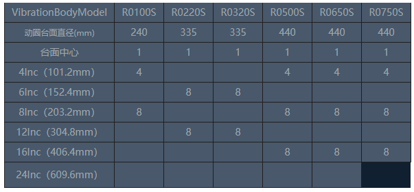 圓形擴展臺具有良好的頻響特性,其臺面螺釘分布符合上表標(biāo)注尺寸。